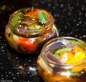 I went to the Green Market at Piedmont this morning with my friend JJ whom I have not seen since he started Grad School this year. We got there at about 8AM, just when the farmers and artisans were setting up their produce, thus we got the pick of the crops! I got some beautiful Heirloom Tomatoes, Peppers, String Beans, Okra, Round Green and Yellow Zucchinis, Goat Cheese (Coles Lake Dairy), and Olive & Ciabatta Breads (Bread Garden). At the end of our shopping, we enjoyed some Scones, Croissants and Coffee from Parish while we watched the parade of happy children and puppies. 1 lbs Assorted Peppers